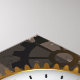 Marcações antigas com engrenagens de ouro e latão, decoradas com libélula mecânica sobre fundo castanho e listrado. Steampunk.