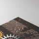 Marcações antigas com engrenagens de ouro e latão, decoradas com libélula mecânica sobre fundo castanho e listrado. Steampunk.
