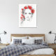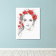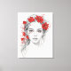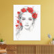 desenho do lápis do rosto de uma menina com flores vermelhas no cabelo