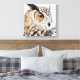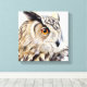 Reprodução de coruja em caixa com tela de Sarah Trett. Arte original produzida a partir de esboços e fotografias. Arte original pintada em aquarela com realces em guache.