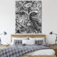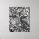 Trabalho de arte preto e branco que foi desenhado à mão com caneta no papel em um fluxo fluente sem planejar o resultado final, e retrata o fluxo de consciência da mente quando deixada para vaguear livre na sua imaginação.