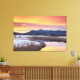 Apresentando um fôlego tendo em vista um rio frio congelado com neve no chão e a paisagem do céu saindo sob um céu laranja e azul. nesta Canvas