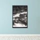 Uma fotografia a preto e branco do rio Ohanapechosh, localizado no Parque Nacional de Monte Rainier. O rio é bordado por um penhasco rochoso e por pilhas dispersas de pedras. A água que corre cria um arco entre as duas bordas de pedra. Imagem Copyright ©2023 Kimberly J Tilley. zazzle.com/store/developingnature