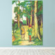 vintage art em verde. pintura vintage de robbin hood o heroico fora da lei do folclore inglês e um popular herói na época medieval, encontrando e apertando as mãos com pouco john no bosque uma luxuosa floresta verde com árvores, rio e ponte. roupão com arco e flecha na floresta de sherwood em nottinghamshire encontra john vestindo roupas verdes e vermelhas e amarelas. e berra uma ilustração antiga do povo inglês aqui de nottingham encontra um dos seus felizes à sombra de uma grande árvore na floresta de sherwood, em shire, de nottingham. arte de safra em verdes.