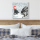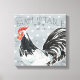 Um design giro, rústico de um galo com texto. Artista: Daphne Brissonnet