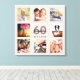 Um único presente de aniversário de 60 anos ou guarda, celebrando sua vida com uma colagem de 8 fotos. Adicione imagens de sua família, amigos, animais de estimação, hobbies ou destino de viagem de sonho. Personalize e adicione um nome, 60 anos e uma data. Cinzas e letras pretas. Um fundo de cor rosa dourado feminino e giro cônico. Esta canvas também está disponível em nossa loja com fundo preto ou branco.
