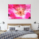 Uma fotografia de proximidade captura a delicada beleza de uma rosa rosa rosa rosa no cheio. A imagem foca o centro da flor, mostrando os detalhes intrincados do pistil e do estame. As pétalas são cor-de-rosa vibrante, desaparecendo em uma sombra mais leve em direção ao centro, onde rodeiam um aglomerado de anteras ouro-marrom carregadas de pólen.