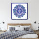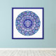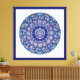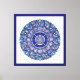 Desenho de uma janela de vidro manchado de uma velha Catedral Europeia: uma janela rosa, com toques de uma grande variedade de cores, incluindo tons de azul claro e azul profundo, sobre fundo azul profundo. Inlay de rochas brancas (desenhada). Este padrão também está disponível em vermelho cardeal em minhas coleções de "rosácea vermelha cardeal". (sem IA)