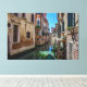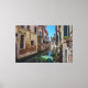 Pintura de canal estreito com casas antigas e coloridas em Veneza, Itália. Gôndola tradicional no canal de água veneziano. Rua de canal estreito com edifícios e barcos coloridos em Veneza