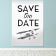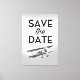 guarde a data do convite para noivado de casamento em um poster preto e branco clássico com um avião.