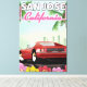 San Jose, poster de viagens da Califórnia. Viagem de arte americana de carros esportivos vermelhos. poster de viagens do Vale do Silício.