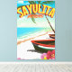 Sayulita Poster de viagens de praia mexicana. Poster de férias de barco mexicano para a praia Sayulita Sandy. Porto Vallarta.