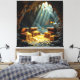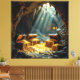 Tief verborgen in einer geheimnisvollen Höhle leuchten unzählige Goldmünzen und Schatztruhen im Licht der Sonnenstrahlen, die durch eine Öffnung in der Decke dringen. Eine Szene wie aus einem Märchen – reich an Magie, Abenteuer und uralten Geheimnissen.