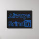 Esta arte de parede exibe as palavras "Always Grindin" em uma fonte Etna Sans Serif impressão com letra azul oca com "in" colocada sobre design de faixa quadrada. Nossas impressões são impressas com a resolução mais alta em papel de arquivamento de algodão-poli, para uma impressão resistente a perda de longa duração, medida 21,00"x15,00". Este impressão vai fazer a adição perfeita para iluminar qualquer casa ou escritório.