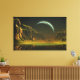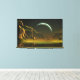 Ilustração digital de um mundo alienígena com uma lua sobre um lago.