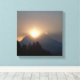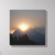 Uma fotografia da ascensão solar matinal acima da crista do topo da montanha do Monte Rainier.