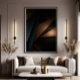 An abstract composition where deep black meets the metallic shine of copper. Precise lines and angular shapes create a futuristic and elegant look. Perfect for those seeking digital art that conveys power, mystery, and sophistication for high-end decor.