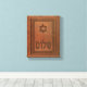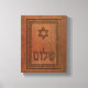 Apresenta uma "esculpida de madeira antiga" gerada por computador de uma Magen David (Estrela de David), texto lendo "Shalom" e uma borda floral.