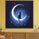 Extra Grande (101,60 cm x 101,60 cm) Tela de impressão de arte. Um gato senta na lua crescente cercado por estrelas no belo céu azul da meia-noite.