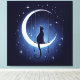 Impressão Em Tela Silhueta de gato balançando da lua crescente