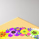 Um sinal de paz floral em tons de rosa, amarelo, laranja, roxo, verde, branco e preto.
