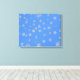 Flocos de neve Dourados e prateados caindo de um céu azul brilhante.