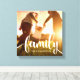 Esta tela de desenho na moda apresenta a palavra "família" em textos brancos modernos e caprichosos, com espaço para seu nome de família. Sua foto favorita da família preenche o fundo.