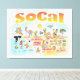 A cena brilhante e colorida oferece uma visão espetacular do sul da Califórnia - personagens malucos da praia e do deserto da SoCal mostrando Los Angeles, San Diego, Orange County, Papais noeis Barbara, Riverside, Palm Primaveras, Anza Borrego e Joshua Tree Parques, assim como as cidades fronteiriças de Tijuana, Tecate e Mexicali. Esta cena encantadora tem tudo - uma surfista pendura dez enquanto uma baleia assassina salta da água, animais de zoológico cumprimentam os turistas, um casal de praia muscular ambos flex para impressionar enquanto um T-Rex lança um desafio e um tanque se posiciona e muito mais...