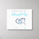 Uma bela tela impressa para uma creche de bebês recém-nascidos ou um quarto de menininho. A design apresenta um doce elefante bebê com orelhas azuis e dedos azuis. Ele está dormindo profundamente em uma nuvem branca e macia, balançando suavemente com os balões azuis em forma de coração. O texto diz "Dream Big Little One" - que é perfeito para um berçário de bebês ou um quarto de crianças. Estes ajustados design em várias canvas de diferentes tamanhos se sentem livres para brincar e obter o tamanho desejado. Procure na nossa loja o design correspondente.