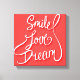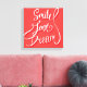 Cartão com elemento design de tipografia desenhado à mão para posters e impressão de cartões de saudação. Sorria o sonho do amor com pequenas nuvens de corações e sorria em fundo vermelho eps 10 | Bigstock® - Todos os direitos reservados.