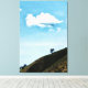 Uma pintura paisagística de uma grande nuvem branca flutuando sobre uma encosta que tem uma árvore solteiro crescendo sobre ela. Copyright © Kimberly J Tilley.