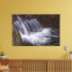 Uma fotografia de uma pequena gota num rio rochoso. A água que cai sobre a borda cria uma grande zona de salpicos no rio quando a água caindo se conecta com o rio fluido abaixo. Copyright Kimberly J Tilley.