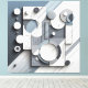 A modern three‑dimensional composition featuring circles, rectangles, and layered geometric forms in a cool monochrome‑blue palette. Overlapping shapes, shadows, and diagonal accents create sculptural depth and a refined architectural rhythm. This piece belongs to the 3D Collection and adds a sleek, contemporary design presence to any interior.