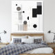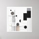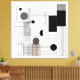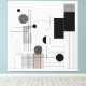 Eine moderne architektonische Komposition mit Kreisen, Rechtecken und präzisen Linienstrukturen, angeordnet in einem ausgewogenen Raster. Die Kombination aus Schwarz‑Weiß und Beigetönen erzeugt einen edlen Kontrast und verleiht dem Werk eine technische, zugleich zeitgemäße Ästhetik für moderne Wohnräume.