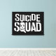 Black and White Suicide Squad logo with a Skull in the letter Q. White letters on black background.