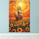 Impressão Em Tela Sunlit Sunflower Sea - Whimsical Sailing Ship Fan