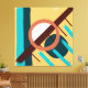 Uma pintura abstrato moderna representando um pôr do sol numa praia. Pintura a óleo de mão - geométrica - paleta de colheita Criada por fantabuloustef - 2023