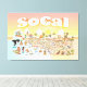 Um espetacular mapa do sul da Califórnia - Los Angeles, Anaheim, Long Beach, San Diego e centenas de outras cidades. Esta cena encantadora tem tudo - uma surfista pendura dez como uma sereia salta numa rocha, uma T-Rex lança um desafio, uma baleia assassina salta da água enquanto um casal de praia muscular flutua para impressionar e muito mais...