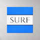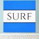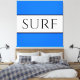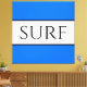 Este elegante design náutico apresenta um texto de "SURF" grande da tipografia negra centrado em dentro a uma larga faixa central branca realçada com listras pretas delgadas e juntando faixas coloridas de fundo azul brilhante. Torne-o seu: as cores neste design podem ser alteradas editando o design. O texto também pode ser personalizado.