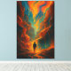 This surreal abstract canvas artwork depicts a lone figure walking through a dreamlike inner landscape of flowing fire and deep teal light. The composition evokes themes of transformation, introspection, and personal journey, blending emotional depth with powerful color contrast.