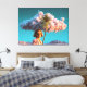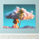 A surreal, cinematic moment where calm rebellion meets dreamy symbolism. A composed figure stands beneath a floating cotton-pink cloud, holding a palm tree like a personal totem against a vast, star-dusted sky. The contrast between soft pastels, distant mountains, and subtle retro styling creates an atmosphere of introspection, freedom, and gentle defiance. This artwork feels effortlessly cool and poetic—capturing the beauty of solitude, imagination, and choosing your own rhythm in a world that never stops moving.