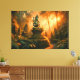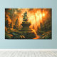 Esta tela mostra uma cena serena dentro de uma selva indonésia exuberante. O foco central é uma estátua esculpida de uma divindade, provavelmente de origem hindu ou budista, sentada em uma pose meditativa em um pedestal de ornamentado. A estátua é renderizada numa matiz suave, verde-azulada, contrastando com a filtragem quente de luz ouro através da folhagem densa. Outras estátuas semelhantes seguem o caminho, criando uma sensação de espaço sagrado dentro do ambiente verde. A cena é banhada num brilho quente e etéreo, sugerindo o nascer do sol ou pôr do sol, e a composição detalhada da folhagem da selva adiciona profundidade e realismo à atmosfera mística.