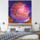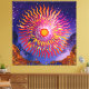 "Solar Whispers no Céu" O Sol. Uma representação surreal do Sol, sua energia vibrante sussurrando segredos para o universo através de intrincados padrões e geometria sagrada. As cores vermelha, laranja, amarela e azul são equilibradas e criam um design de outra presença no mundo.