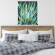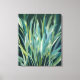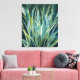 Acrylic canvas print of beautiful blue, green and white swaying leaves against a dark background.