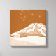 Uma ilustração de Syme hut no Pico de Fathoms, com o Monte Taranaki ao fundo. Esta design é desenhada num monocromo castanho e tem as estrelas Matariki sobre ela no céu. Um design para qualquer um que adora caminhar e vagar na Nova Zelândia.