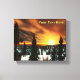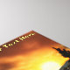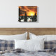 Inverno na taiga ártica. Com o sol no horizonte, a neve brilha e o céu queima laranja e amarelo. Personalize adicionando seu próprio texto.