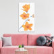 This work highlights three striking orange blossoms with bold petals and expressive detail. Their vivid color is balanced by a cool-toned branching stem, creating contrast and visual rhythm. Buds surrounding the flowers suggest growth and transition, while the clean composition keeps the focus on natural form and structure.