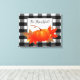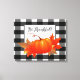 Torne suas paredes festivas nesta temporada de festas com uma Xadrez Pumpkin Buffalo Stretered Canvas Print. Design de impressão de tela apresenta uma abóbora vibrante adornada com folhas de outono contra fundo de xadrez de búfalo preto e branco. Itens adicionais de presentes e feriados disponíveis com este design também.