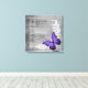 Adicione um toque elegante ao seu quarto com uma tela personalizada rustica de borboleta púrpura. Impressão design apresenta uma borboleta vibrante que repousa sobre uma folhagem delicada com um espaço para adicionar o seu nome contra um fundo de madeira rústico. Itens de presentes adicionais disponíveis com este design também.