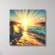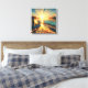 Bonito praia acampar a vintage Canvas Art com uma ilustração ai de uma tenda em uma praia como o sol é ascensão. Ilustração Ai feita em uma arte hiper realista do estilo dos quadrinhos.